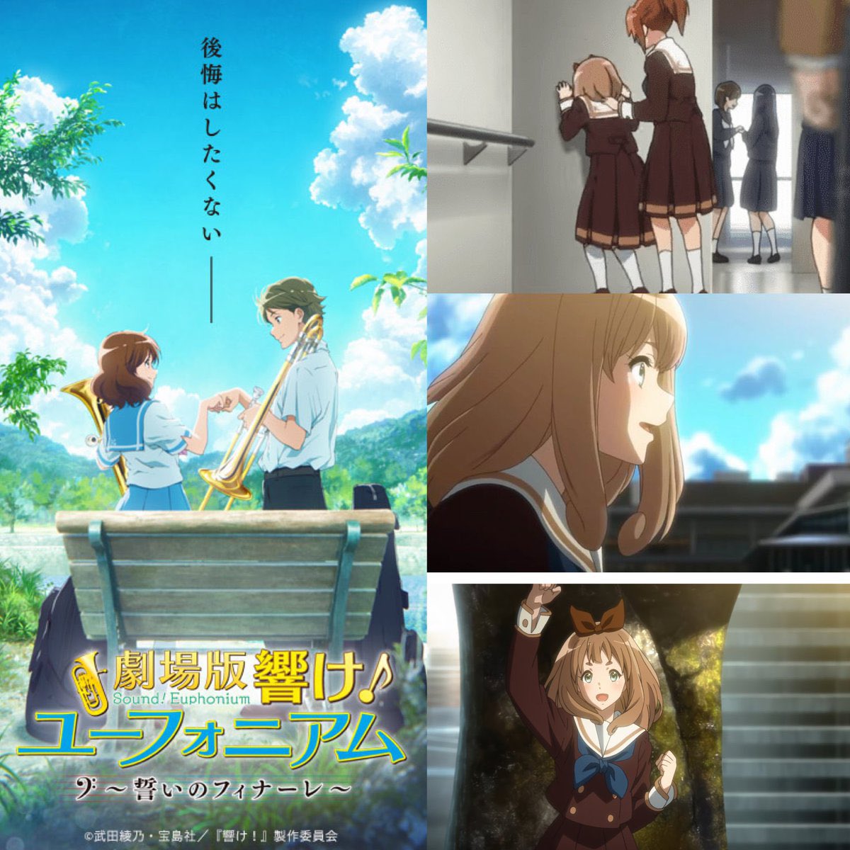 I really felt how much Kazumi and Shuichi care for each other. Especially when she calls him 'Kimi-kun'—it's a little embarrassing for him to hear his name so many times, but I think he's happy about it. Also, the scene about the Kazumi bench makes me feel like when you stand there, your memories come back. And this movie was really moving! Especially Yuki's speech and the scene with the rain-soaked field—I couldn't stop crying. Every time the euphonium plays, my heart warms up. It's a bit sad that this year is ending, but I'm looking forward to the next story.