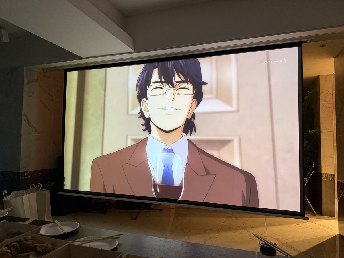 People say it's the best to watch with a glass of wine, and I agree! The first episode had a strong impression with the first meeting between Shizuku and Iizumi, but Kamei Kazuya's voice was really fresh, giving a different feeling of Shizuku than in the drama. Especially the scene where Tominaga reacts with 'Ooo... ooo...' feels more vivid in the anime. Also, many people say the length of the first episode is just right, as the story is well-packed in 30 minutes, making the next episode exciting. There are also a lot of bonus features on the Blu-ray box, so it's definitely something to watch for in the future.