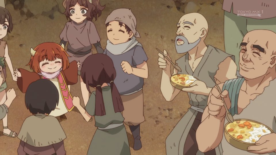Duchan's mom suddenly returned to the Demon Castle, and Duchan looked a little awkward, which was really cute. But Dahaaka tried to be friendly, so I think they'll eventually warm up to each other. Also, Satichan brought corn and made a stew, which showed Duchan's kindness and was heartwarming. Especially when the Destroyer Zares got corn chowder, it was funny! And the ceremony of showing faces felt like a finale, making me excited to see if Duchan will be recognized as the next Demon King. Finally, everyone's cheers made me look forward to Duchan's future.