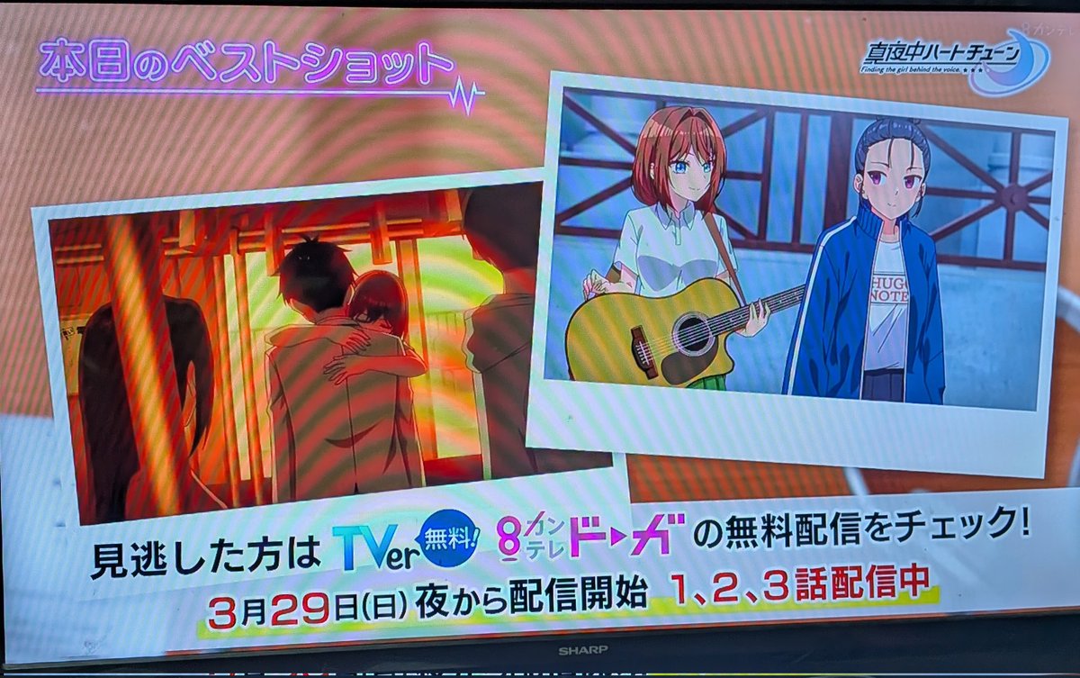 Ah, the final episode really warmed my heart. The scene where Rikka and Aiko made up and the street performance was so emotional, I couldn't hold back my tears. Especially when the song 'Yoru Nagi' played, that duet was amazing, and the scene with the heroines after the ED was memorable too. Also, the scene where Yamabuki-kun apologized was cute. I'm happy the second season is already decided, and I'm looking forward to seeing more next year.