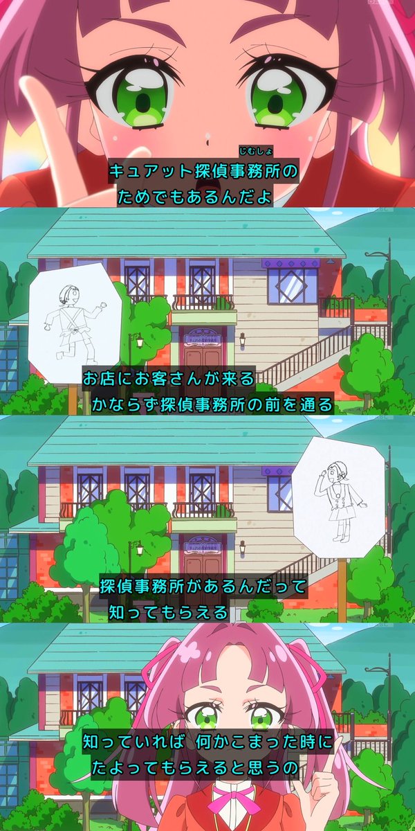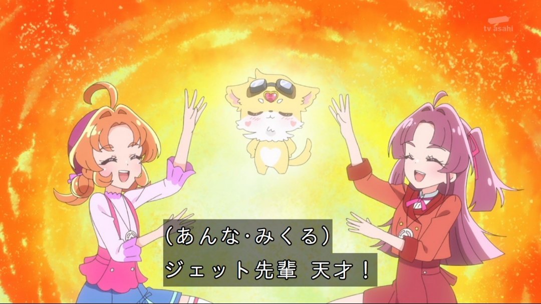 Episode 8 really highlighted Jet-senpai's actions! There were some comments about Pretty Smile being split too much, and everyone seemed to smile at Jet-senpai's cuteness. There was also a mention that Pochitan's Pukyua outfit was handmade by Jet-senpai, which made it feel more familiar. It was a surprise that Nijiya was in a male outfit, and the presentation not going smoothly was funny too. Many people also saw Luruka-chan shopping in disguise. It felt like the story was expanding with the detective's base being found during a walk, and the shadow of Jet-senpai being behind Foundation B and Pretty Holly. Especially since it was an episode about Jet-senpai's past, the conversation about fairies being long-lived species caught my attention. Pretty Holly opened safely, so I'm looking forward to what's next!