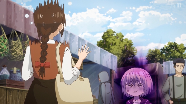 In episode 11, the development where Lilui was charming was really memorable. Veronica's short hair looked really good on her, and I wanted to see more. Ania's cuteness was adorable, and I was surprised to see Coco too. I felt a little sad that Lilui wanted to be seen as a girl by Hajime. Also, Hajime's way of treating her like a child was really endearing, and it made me smile. I like the cozy, everyday life of an adventurer.