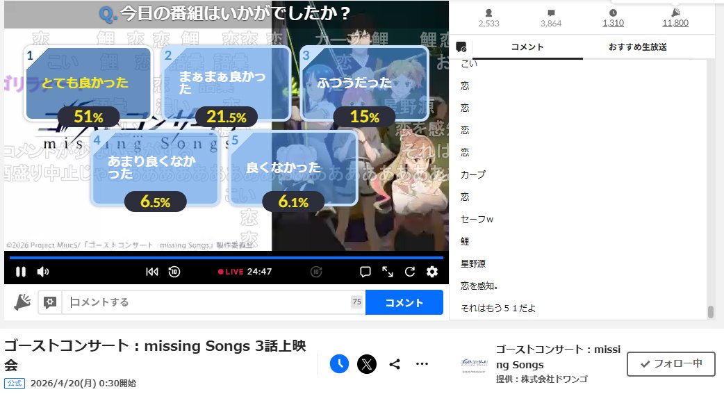 第3話「剣山刀樹」、沖田総司のゴーストが登場したね!剣豪の無念から生まれたという感じがして、なんだか胸が熱くなった。村山朱莉と雪庭が次なる攻略ポイントに挑むんだけど、その前に立ちはだかるのはやっぱり強そう。特に剣の動きがカッコよかったし、バトルシーンも見ごたえがあった。あと、憑依鎮魂歌で共鳴するってこと、ちょっと意外だった。沖田総司って、今まではあまり知らなかったんだけど、今後もっと関係してくるのかな。それに、この話で各キャラクターの背景が少しずつ見えてきた気がする。なぜみんな歌を取り戻したいのか、もっと知りたいな。作画もしっかりしてて、特に剣の描写がよかった。次回はどんな展開になるのか、楽しみだな。