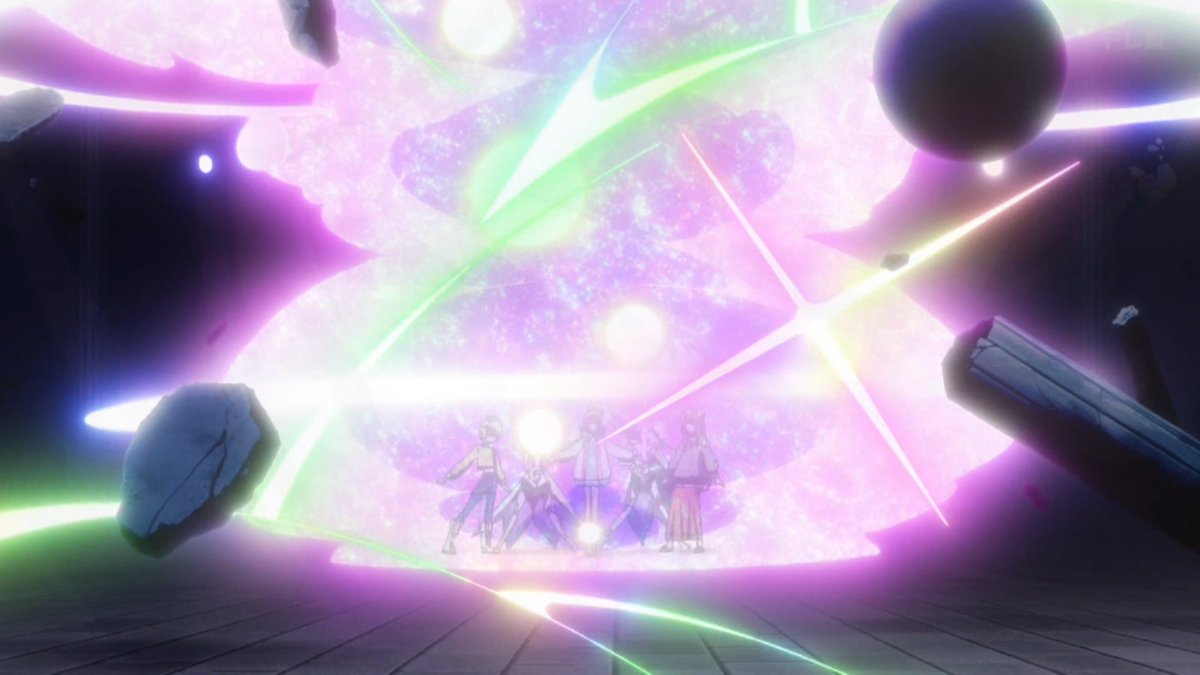 変身の瞬間、みんなが光る!