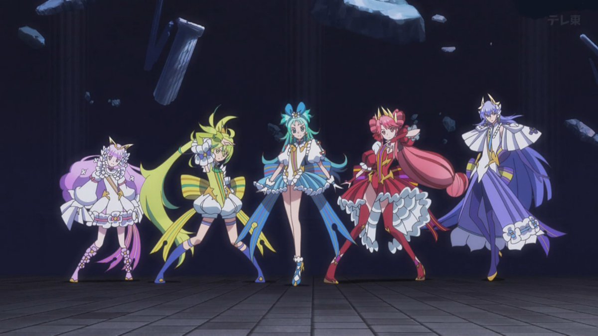 第45話は、プリンセスたちとバンドスナッチの対バンがとても印象的だったね!特にカリストさんが「我らバンド・スナッチ、魂のスッテージを」というセリフが、なんだか笑顔がこぼれちゃうような感じだった。変身シーンもたくさんあって、みんなかっこいいし、歌のカケラが反応するところも好き。ナビーユ王とバンドスナッチの関係も、なんだか昔の友達みたいで、温かみがあるよね。あと、花の騎士の2人が戦ってるのを見たとき、総力戦って感じがして、ちょっと感動した。バンドスナッチって、敵だけど悪役というより好敵手って感じがするから、これからも注目したいな。