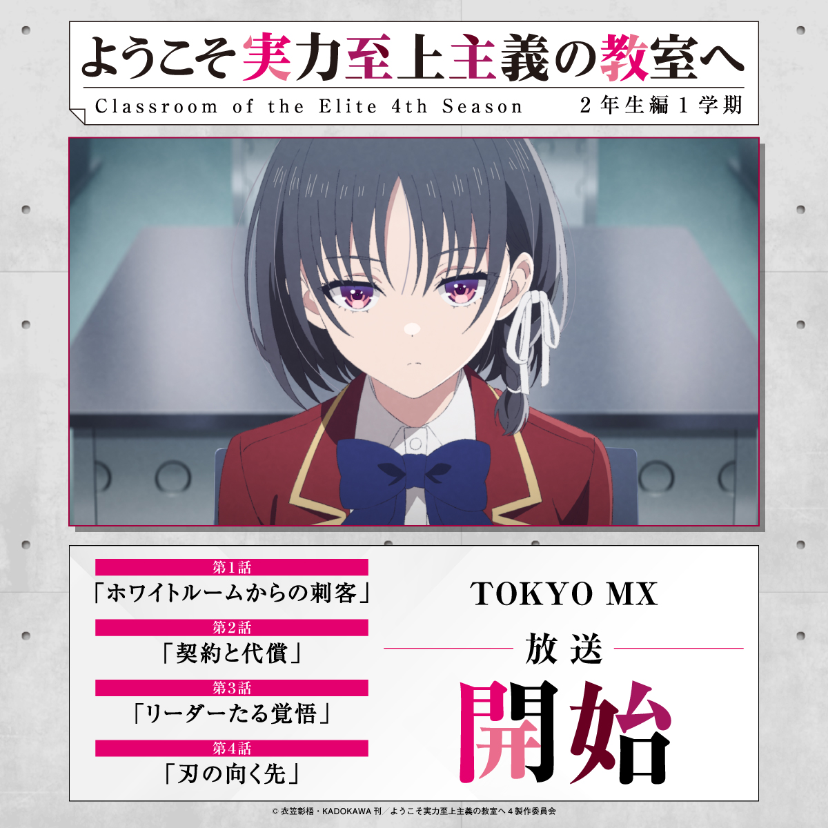 第2話の予告で堀北鈴音と櫛田桔梗のやりとりが気になったな。特に堀北の冷静な態度と桔梗の少し気味の悪い感じが、今後の展開に何かありそうって思わせてくれたよ。あと、軽井沢恵が可愛いってツイートが多かったけど、彼女の存在感がこの作品にすごく合ってる気がする。特に第1話で彼女が登場したときの印象が強くて、これから彼女がどう成長していくのか楽しみだ。また、宝泉和臣の怖さがツイートでよく出てたけど、彼のキャラクターがどう展開されていくのか、ちょっと気になっている。そして、OPの「MONSTER」がカッコいいって声も多かったね。藍井エイルさんの歌がアニメの雰囲気をよく引き立てている気がする。あと、第4話の予告で八神拓也が出てきたのが意外だった。彼の登場が今後のストーリーにどんな影響を与えるのか、ちょっと楽しみだ。
